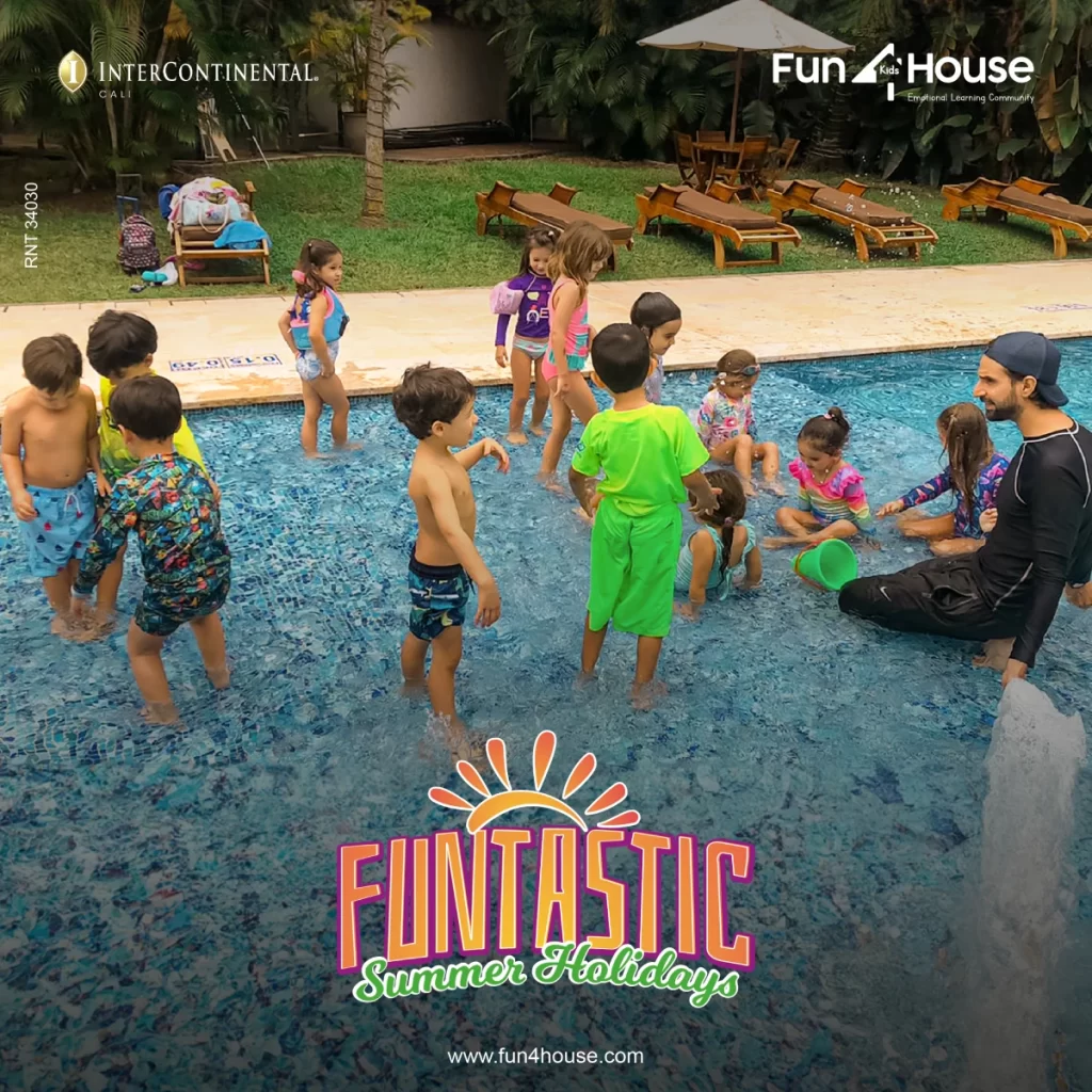 En Fun4house la natación no solo es una actividad lúdica – recreativa y física beneficiosa para la salud de los niños, de las niñas y jóvenes, sino que también contribuye a su bienestar emocional y social al promover la confianza en sí mismos, la autoestima, superar los miedos y las habilidades sociales. El rincón de piscina, brinda experiencias para fomentar en ellos, el trabajo en equipo y la interacción social; desde una comunicación respetuosa, empática y asertiva.